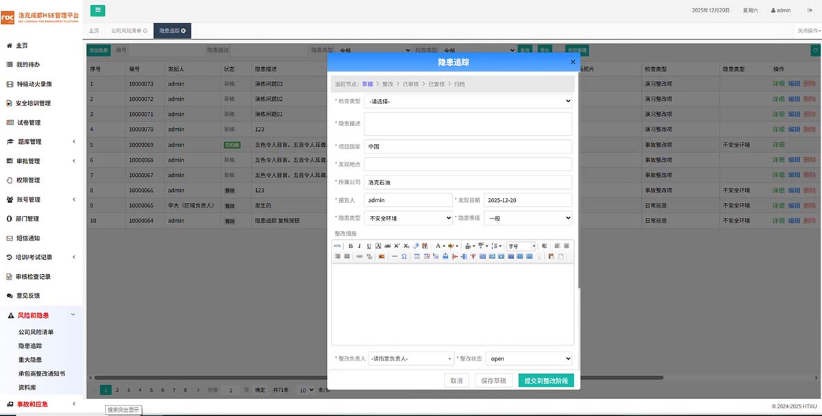 洛克石油HSE管理系统II期完成开发测试进行试运行,系统含PC端和移动端