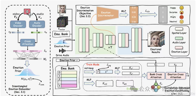 • 作用:提高生成结果的情感可信度,确保最终头像的情感表达与输入音频和视觉信息一致。