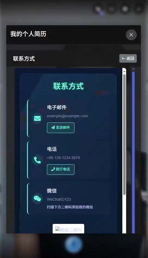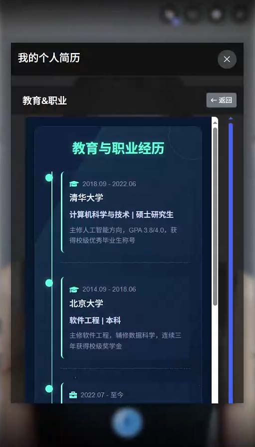 可以直接和求职人的数字分身直接对话,支持语言切换,可以方便的查看求职人的图、文、视频信息,助力毕业季求职