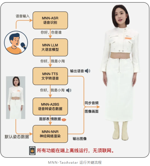 MNN-TaoAvatar 具有两个核心优势:端侧实时对话和端侧实时渲染。