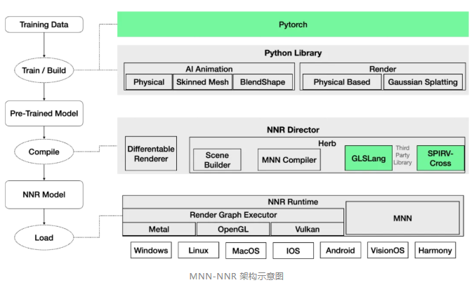 MNN-NNR 是 TaoAvatar 的核心 3D 渲染引擎,专为在移动设备上实时渲染高质量数字人模型而设计。其核心的技术优势如下: