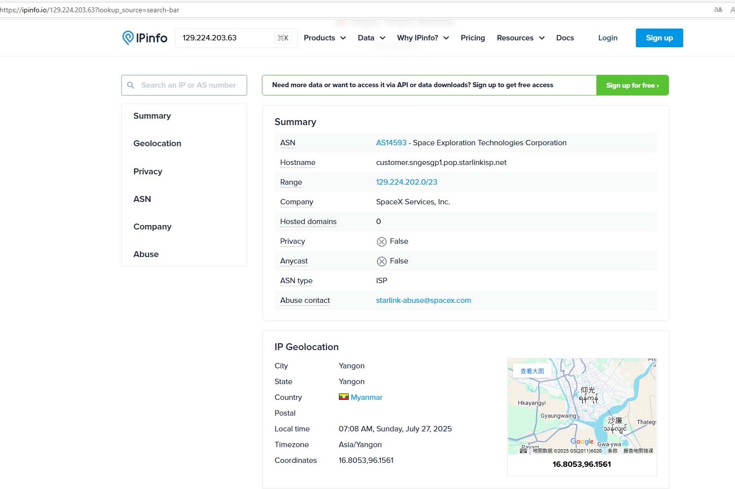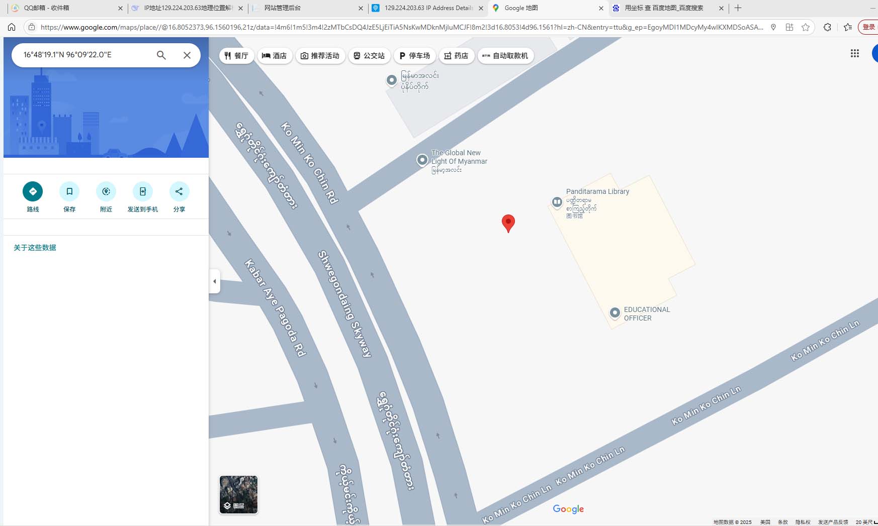 看世界地图还是Google,一个IP,百度地图定位在国内,Google定位在仰光~