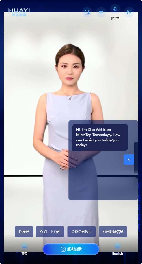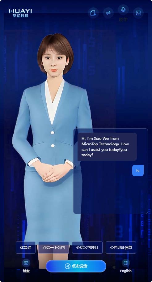 新增快捷问题回复,数字人形象实时切换,语音音色选择(EdgeTTS),中英文语言支持,新启话题等