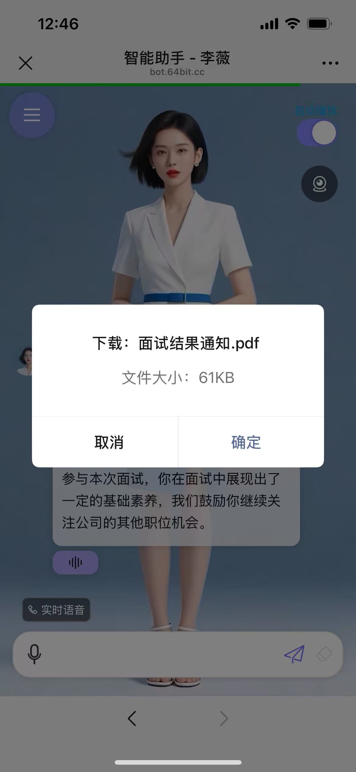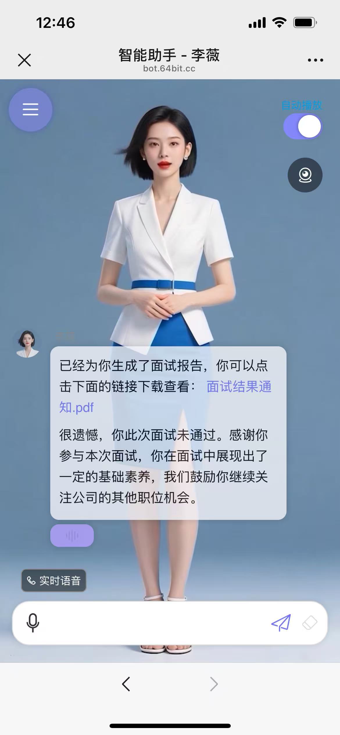 基于Coze智能体的AI面试效果,可以根据语料提供的岗位信息,选择不同面试官角色,和用户进行多维度的面试,并且给出点评、分值和反馈结果。