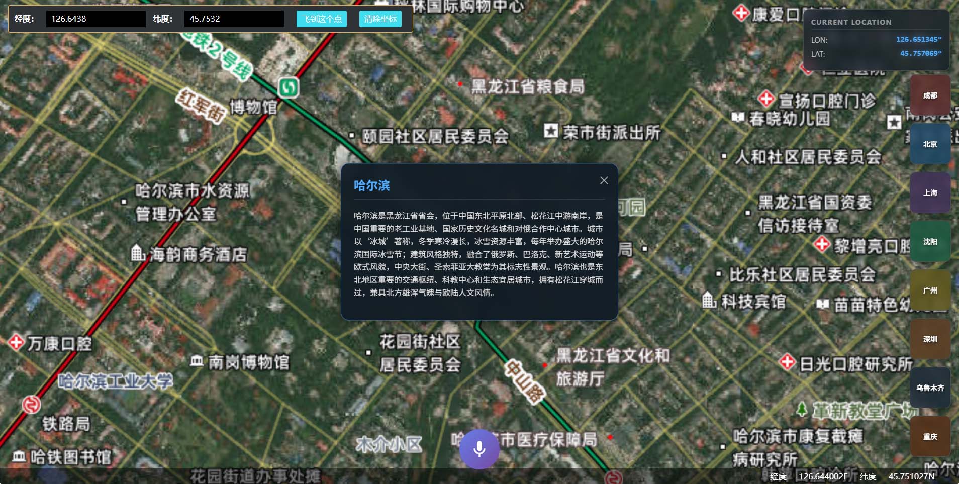 北斗卫星科普展馆掌上地球效果,支持语音交互、AI交互、预设城市视频展示,指定经纬度坐标自动跳转等