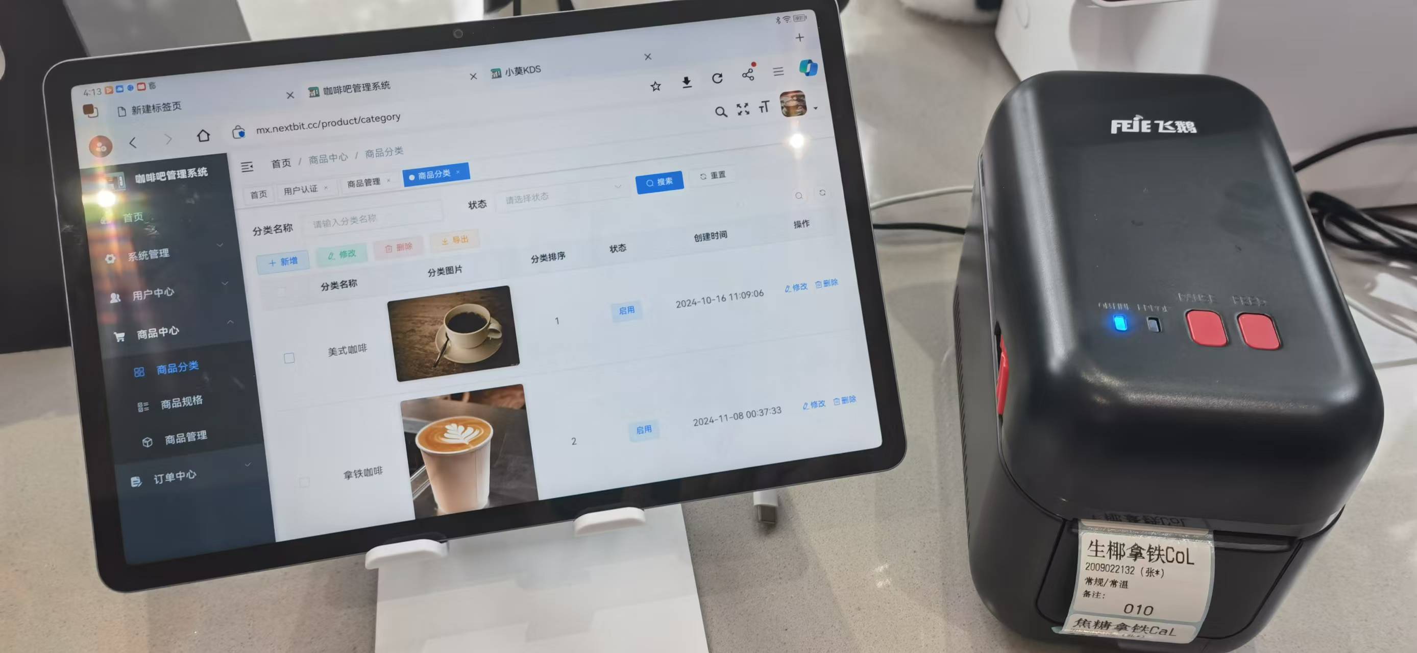 KDS端云打印机接收咖啡标签信息