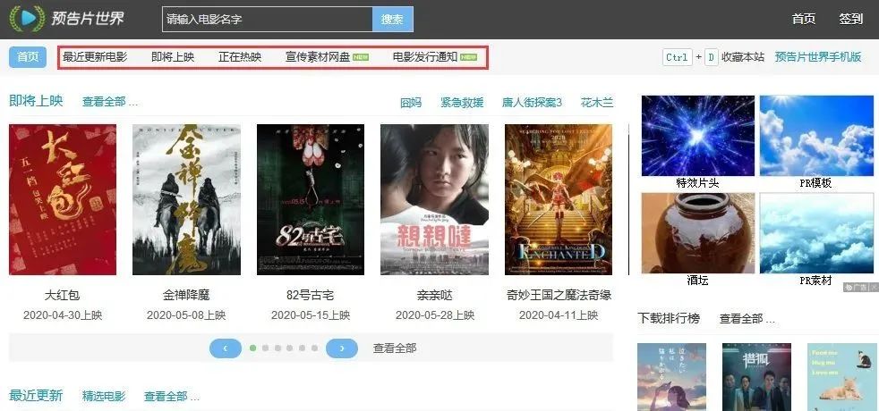 “预告片世界”,里面有各种最新电影的预告片,资源丰富,画质清晰,可以直接下载下来,所需要的科幻电影也有。适合想做影视混剪的小伙伴。