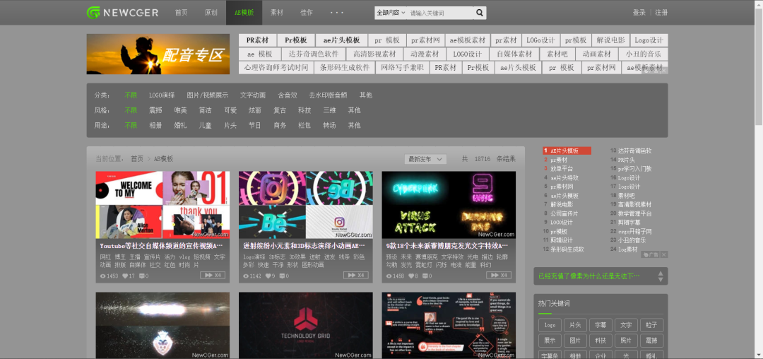 这个网站中主要可以查找PR与AE的素材和模板。