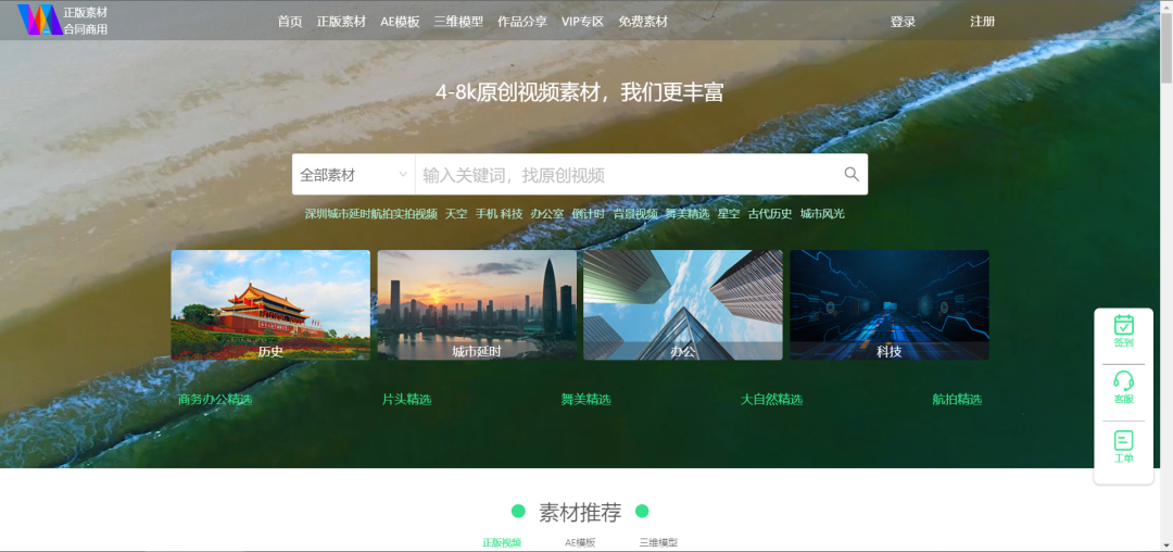 该网站广告词就是“4K-8K原创视频素材,我们更丰富”,有付费区也有免费区,成为了摄影师们赚取劳务费的聚集地。