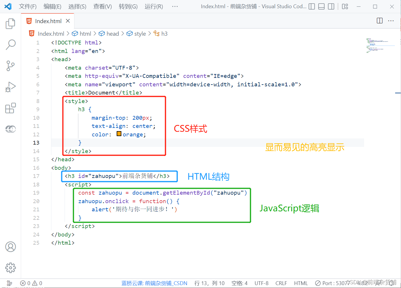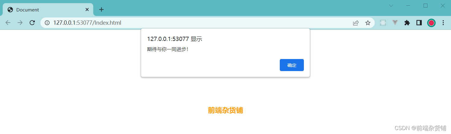 打开 html 文件,点击 前端杂货铺,弹出框信息展示如下: