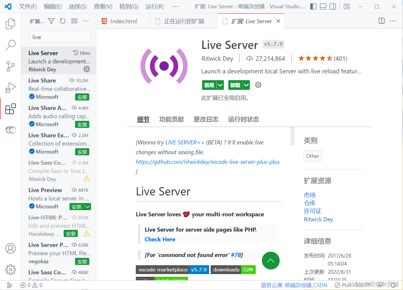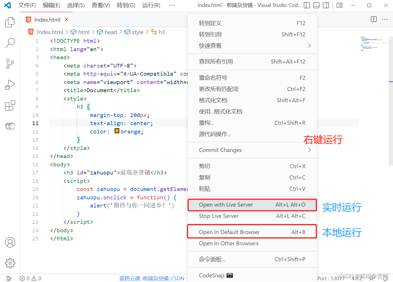 (2)Live Server:快速启动本地服务,自动监听(不需要刷新)