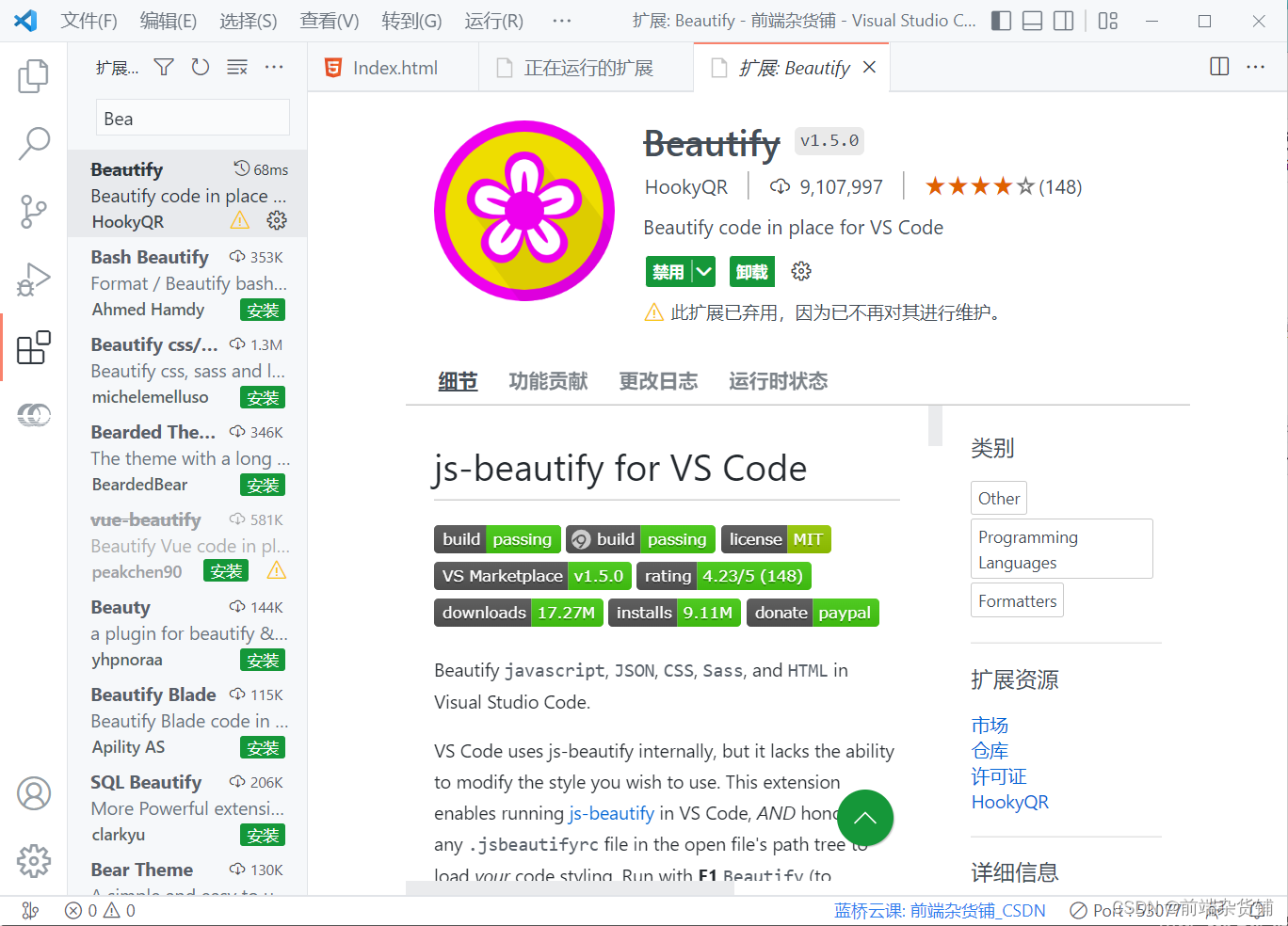 (1)汉化 VS Code:简体中文版【下载安装方式如下】