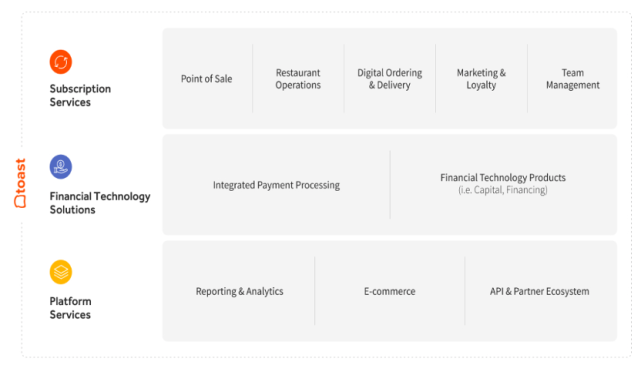 在北美市场中,2021年上市了的餐饮SaaS有两家是比较有特点的,一家是TOAST,另外一家是OLO。