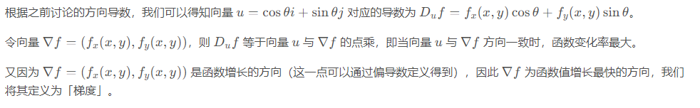 对于多元函数,存在无穷多个方向导数,因此我们希望找到某个方向,使自变量沿该方向变化,函数值增长最快。