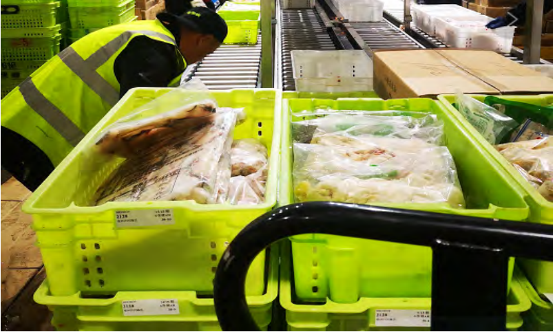 现在的冷链分拣效率:374PCS/每小时/每人,每日10万PCS约需要267人/小时