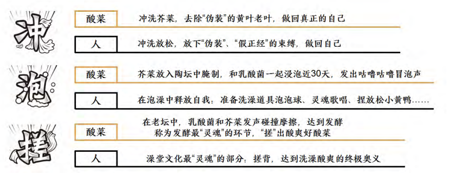“太二澡堂”整体活动以“搓洗灵魂,酸爽做人”作为活动slogan,分别以线上“云搓澡”H5及线下互动沉浸式快闪体验《太二澡堂》与全国消费者进行互动,希望现代年轻人在“太二澡堂”洗掉日常伪装与束缚做回自己,获得酸爽自由。