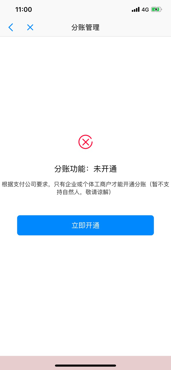 自然人不支持开通,非乐刷通道不支持开通