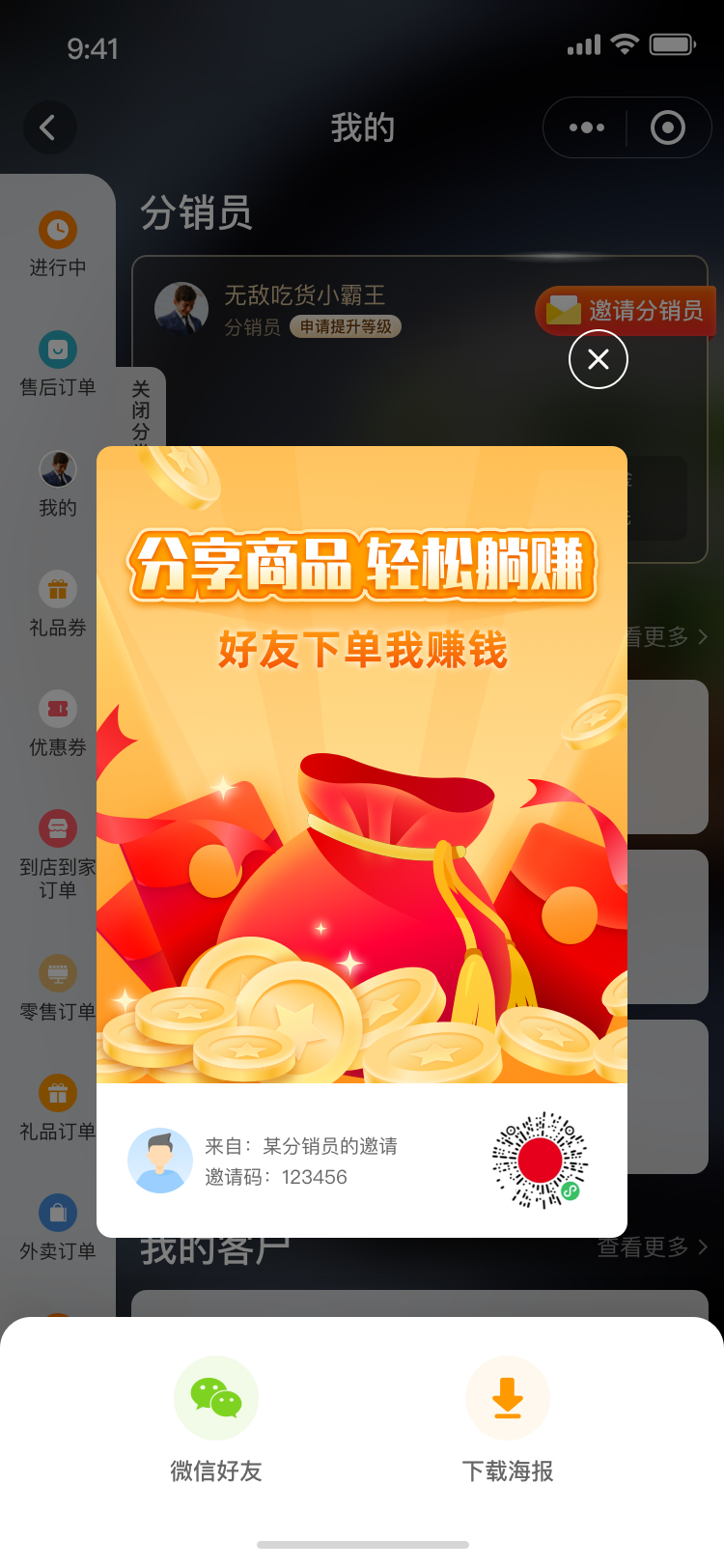 设置后分销员可在C端,通过分销个人海报发展下线分销员并绑定上下级关系