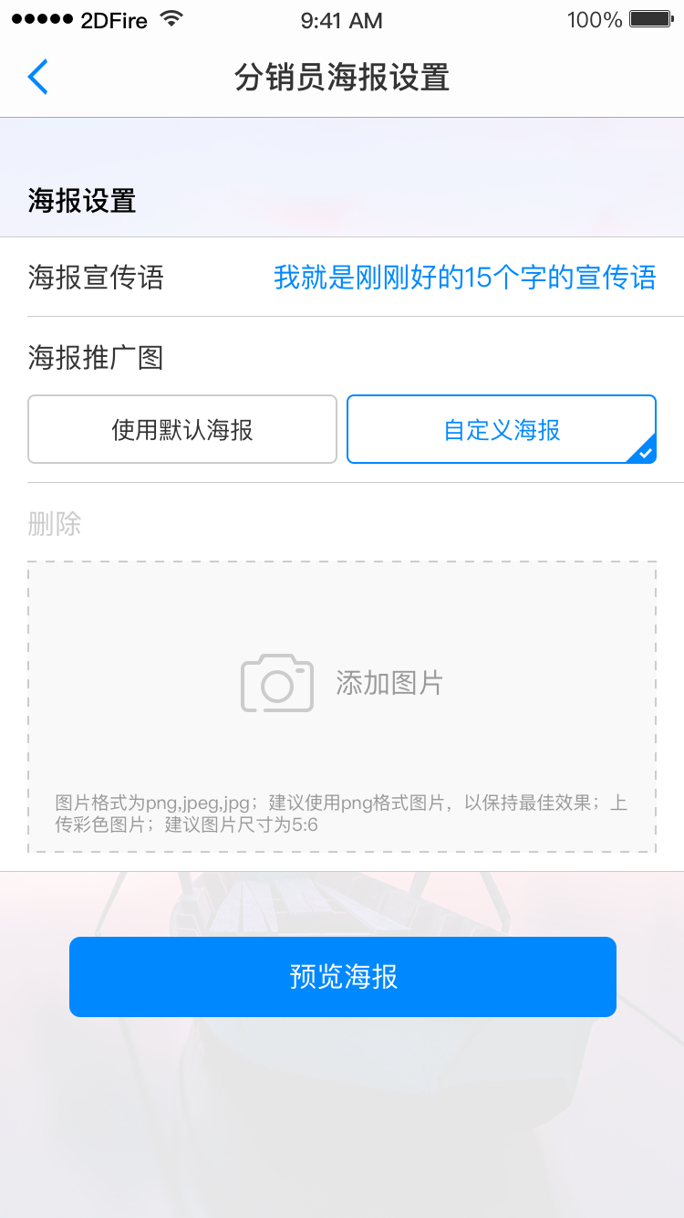 可设置分销员个人海报的宣传语和海报图片。
