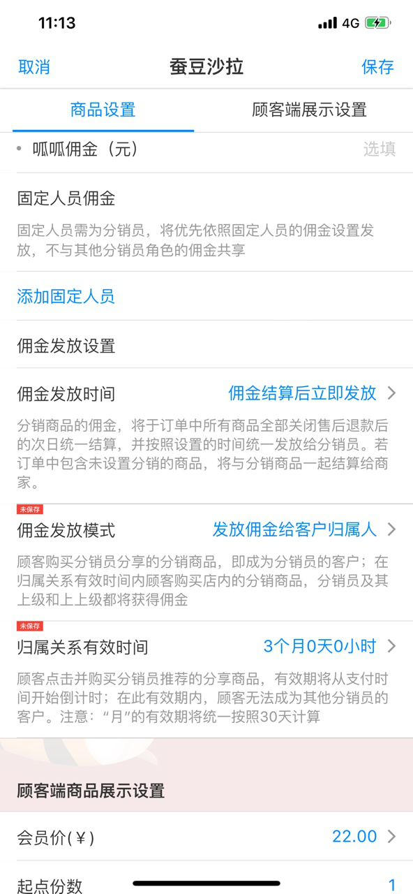 若佣金发放给客户归属人,可设置客户与分销员归属关系的有效时间,客户只要购买了分销商品,对应归属人就能获得钱。