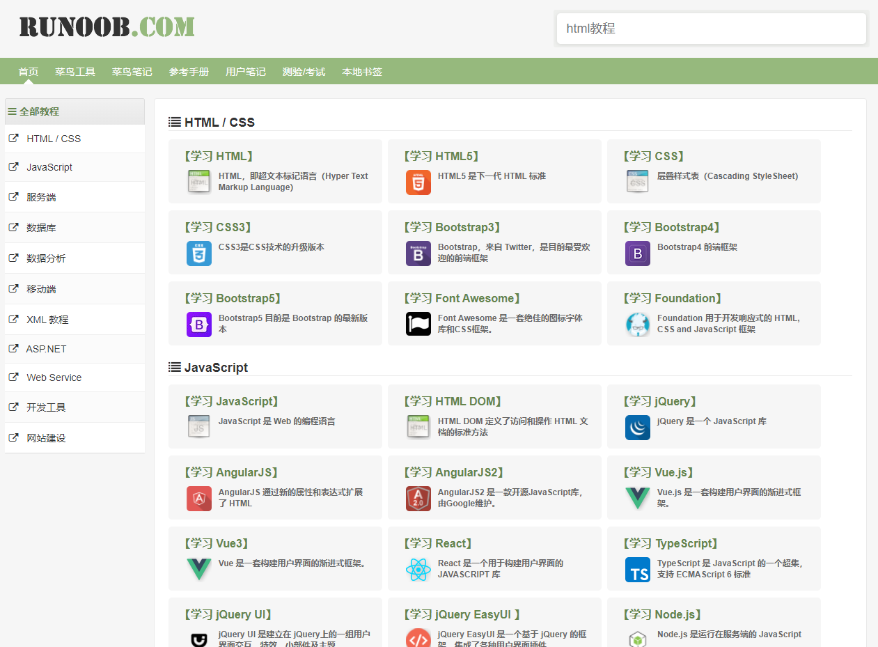 这也是一个主打图文教程的网站,也是纯免费,web开发和各类语言学习学习都有,排版上面我个人觉得比W3school要舒服一些,内容也更详细一些。