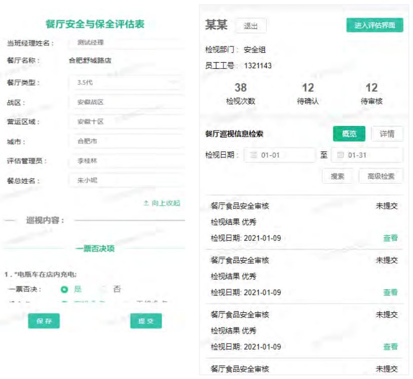为了切实有效地把控以及改善门店(餐厅)的经营管理状态,推出了巡检日志系统。配合国家和市场对于餐厅经营的要求,陆续推出了餐厅现场综合评估检查、餐厅人员资质评估检查、餐厅安全与保全评估检查、安全审核检查、卫生检查等多项巡检评估检查内容,推动门店实施整改,实时监控巡检-整改-实施落实全流程。