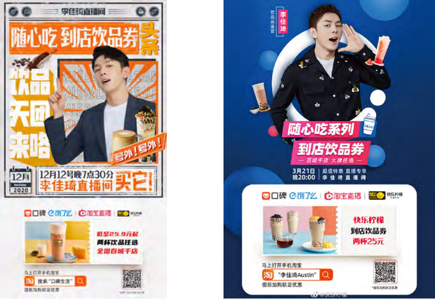 凭借着高人气的直播,我们趁势追击多次参与了李佳琦 Austin 和阿里巴巴本地生活的茶饮吃播秀。