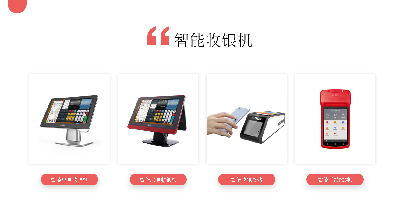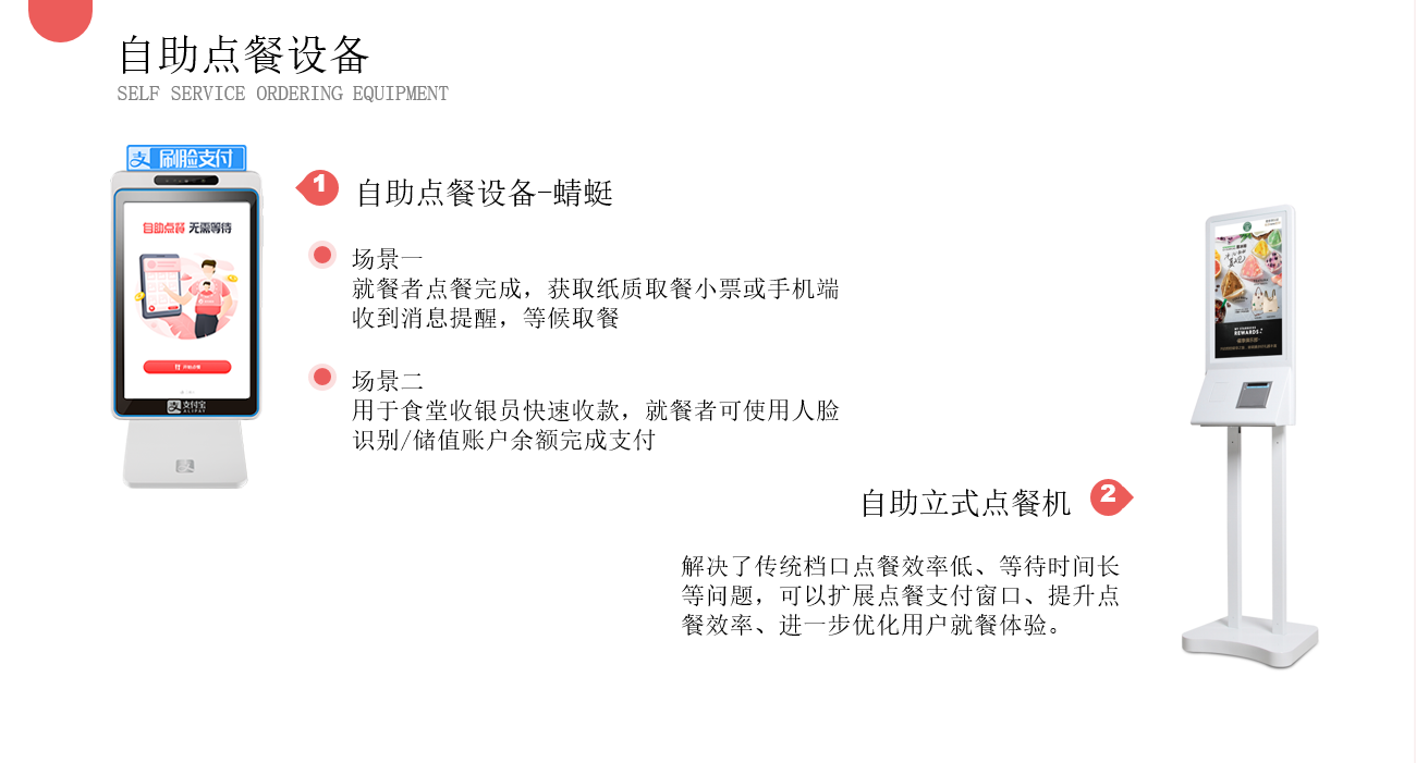 收银机、手持、图像识别结算台、RFID结算台、蜻蜓自助点餐、立柱自助点餐机等。
