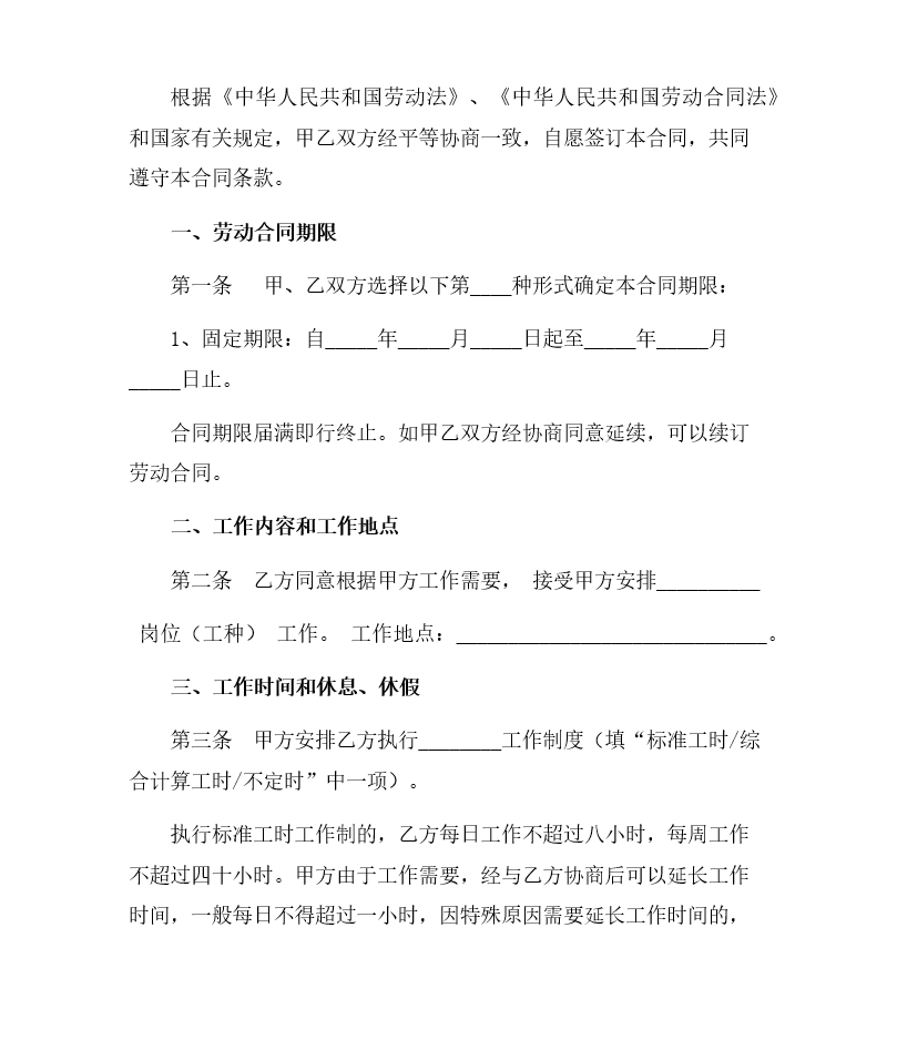 劳务用工合同(成都人力资源和社保局标准版本)下载