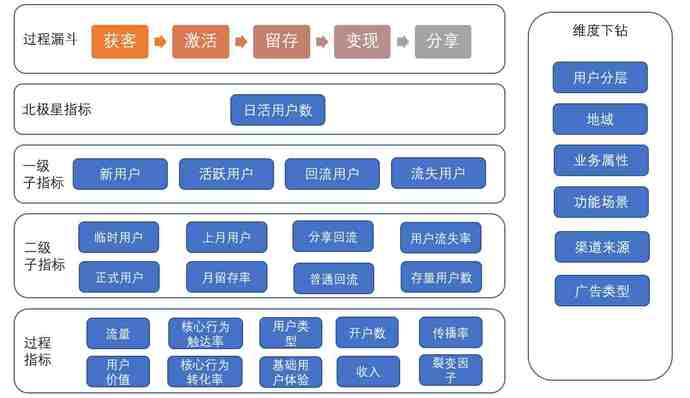 确定了北极星指标及子指标,我们还需要过程指标将它们串联起来。
