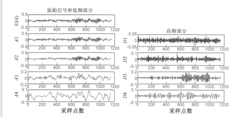 想象右手运动脑电信号小波四层分解