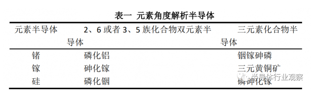 二、六或者三、五族化合物双元素半导体,即是指由两种确定的原子配比形成的化合物,并具有确定的禁带宽度和能带结构等半导体性质。包括晶态无机化合物(如III-V族、II-VI族化合物半导体)及其固溶体、非晶态无机化合物(如玻璃半导体)、有机化合物(如有机半导体)和氧化物半导体等。通常所说的化合物半导体多指晶态无机化合物半导体。