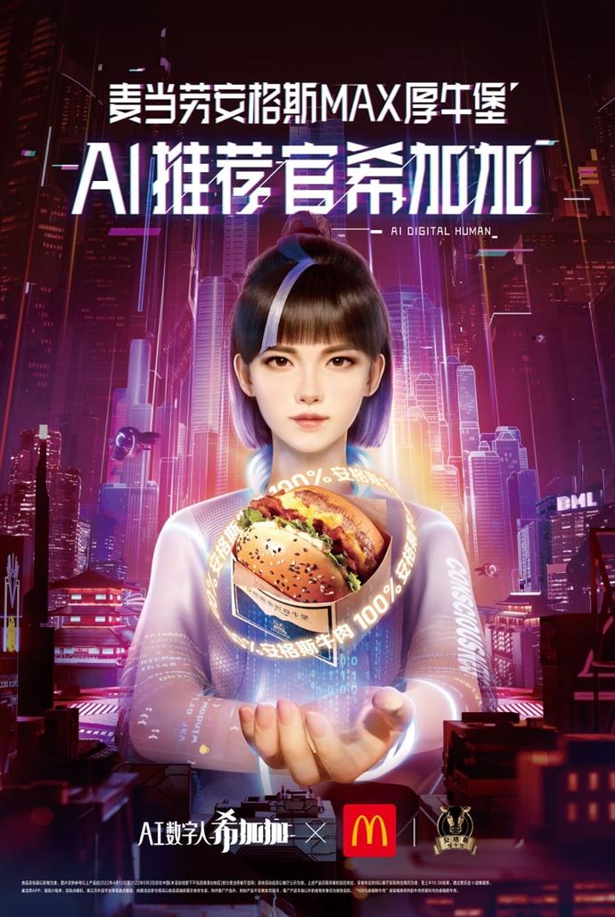 此刻,站在广告牌下的观众才恍然大悟,原来这是麦当劳的广告?!这款连「希加加」都忍不住要尝上一口的“安格斯MAX厚牛堡”竟然是麦当劳推出的新品,而希加加也顺理成章地成为这款单品的AI推荐官。