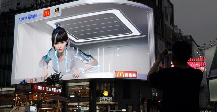 如果将虚拟人和裸眼3D,这两种时下最流行的营销方式合二为一,会碰撞出怎样的火花呢?最近,百度旗下的AI数字人「希加加」就与麦当劳联手,在成都、大连的裸眼3D大屏上演了「吃汉堡的数字人」。而这一幕也让不少网友感叹:活久见。
