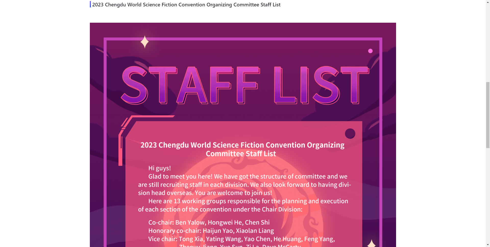 2023 Chengdu World Science Fiction Convention Organizing Committee Staff List (worldconinchina.com)