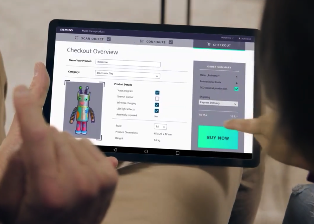 小女孩会将原有的玩具Robostar扫描拍照,进入西门子打造的个性化产品制造平台——「Make me a product」。