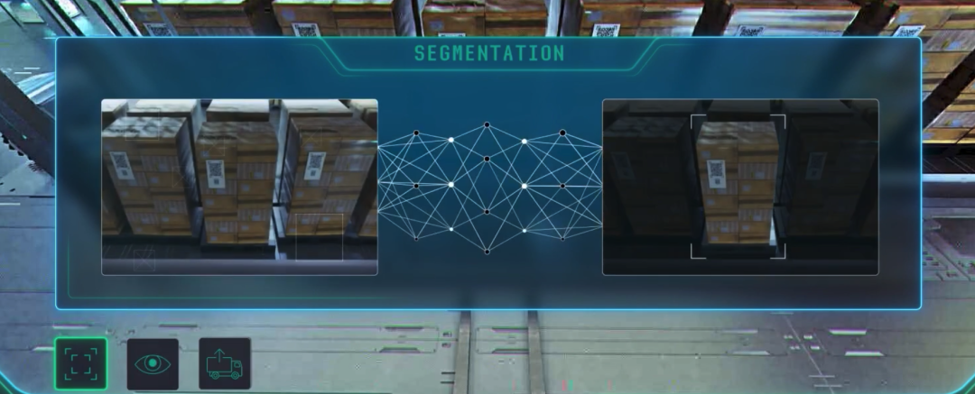 就比如视频中叉车自动拣货装货的这么一套工作流,首先要准确识别是哪一个货箱;然后要找准叉车进入的孔位;最后要执行的是往上搬运的动作。各种人工智能技术加持,让这些流程得以自主完成。