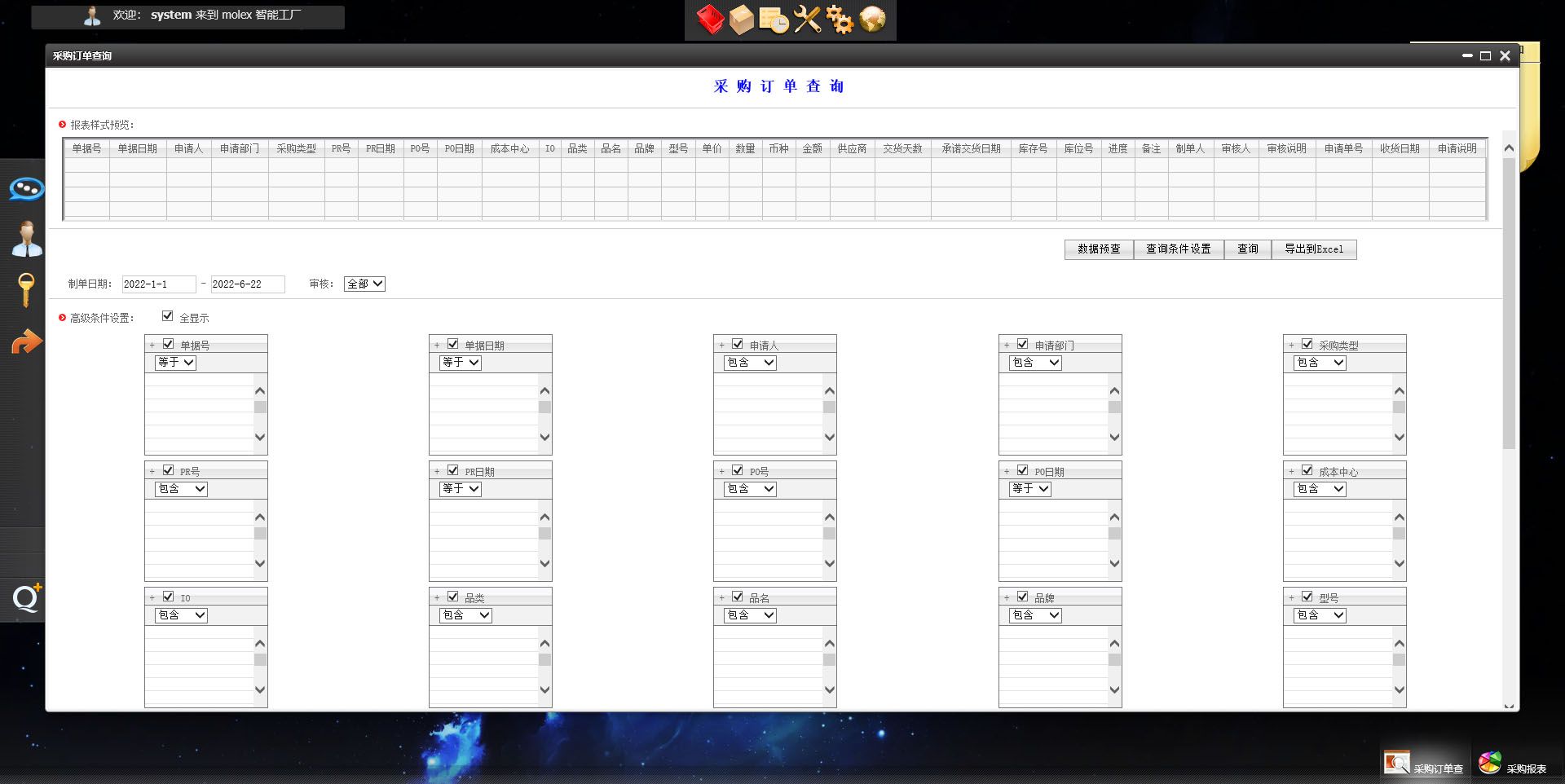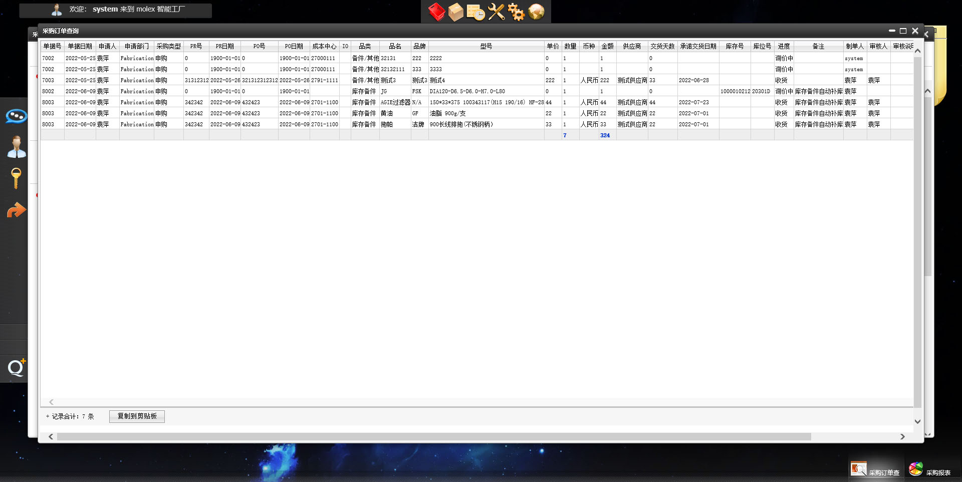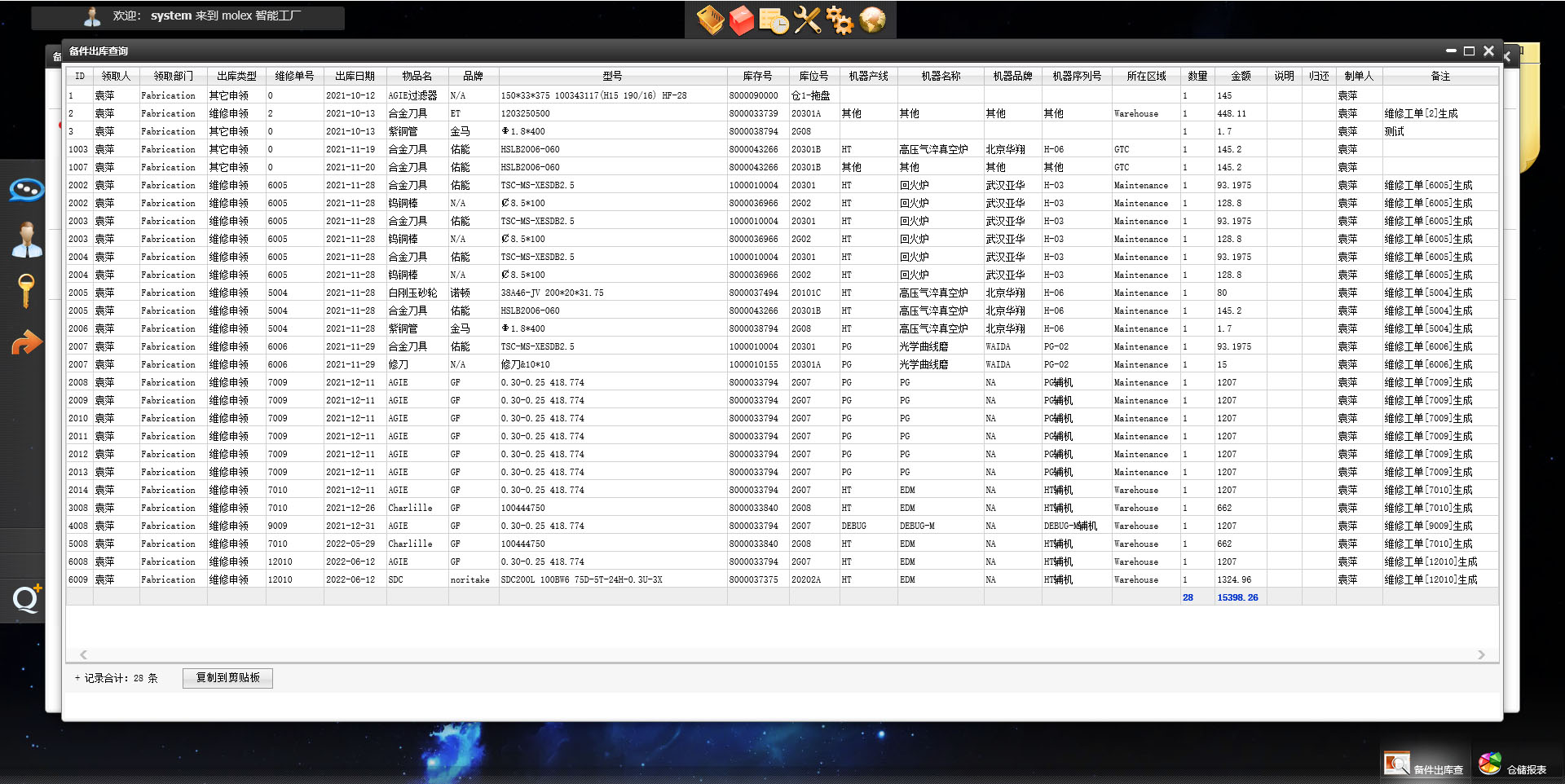 molex 备件管理系统通用报表自识别数量和金额汇总功能