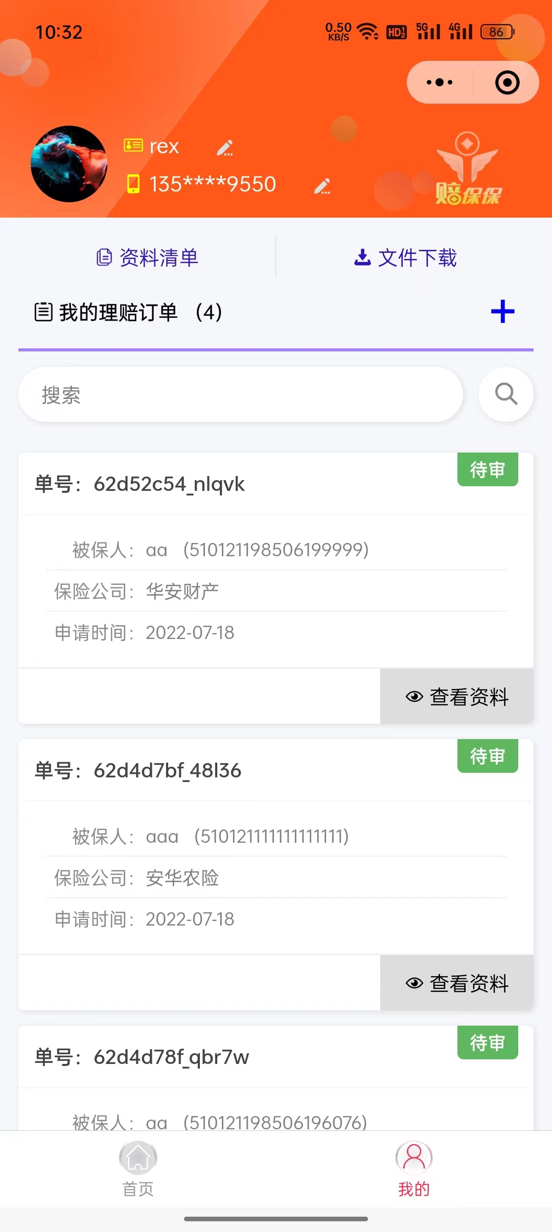 保险理赔小程序项目测试中