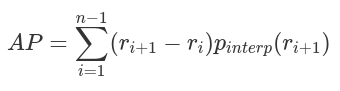 AP可定义为插值精度召回曲线下的面积,可使用以下公式计算: