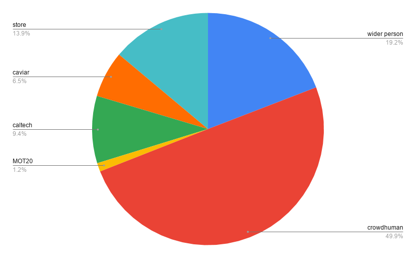 我们的下一步是收集包含行人/行人边界框的公共可用数据集。有很多数据集可用于人体检测,但我们需要一些关于数据集的附加信息,如视角、图像质量、人体密度和背景等,以获取数据集的分布信息。我们可以看到,满足我们确切需求的数据集并不多,但我们仍然可以使用这些数据集,因为人体边界框的基本要求已经得到满足。在下载了所有的数据集之后,我们把它转换成一个通用的COCO格式进行检测。第二个人体检测模型
