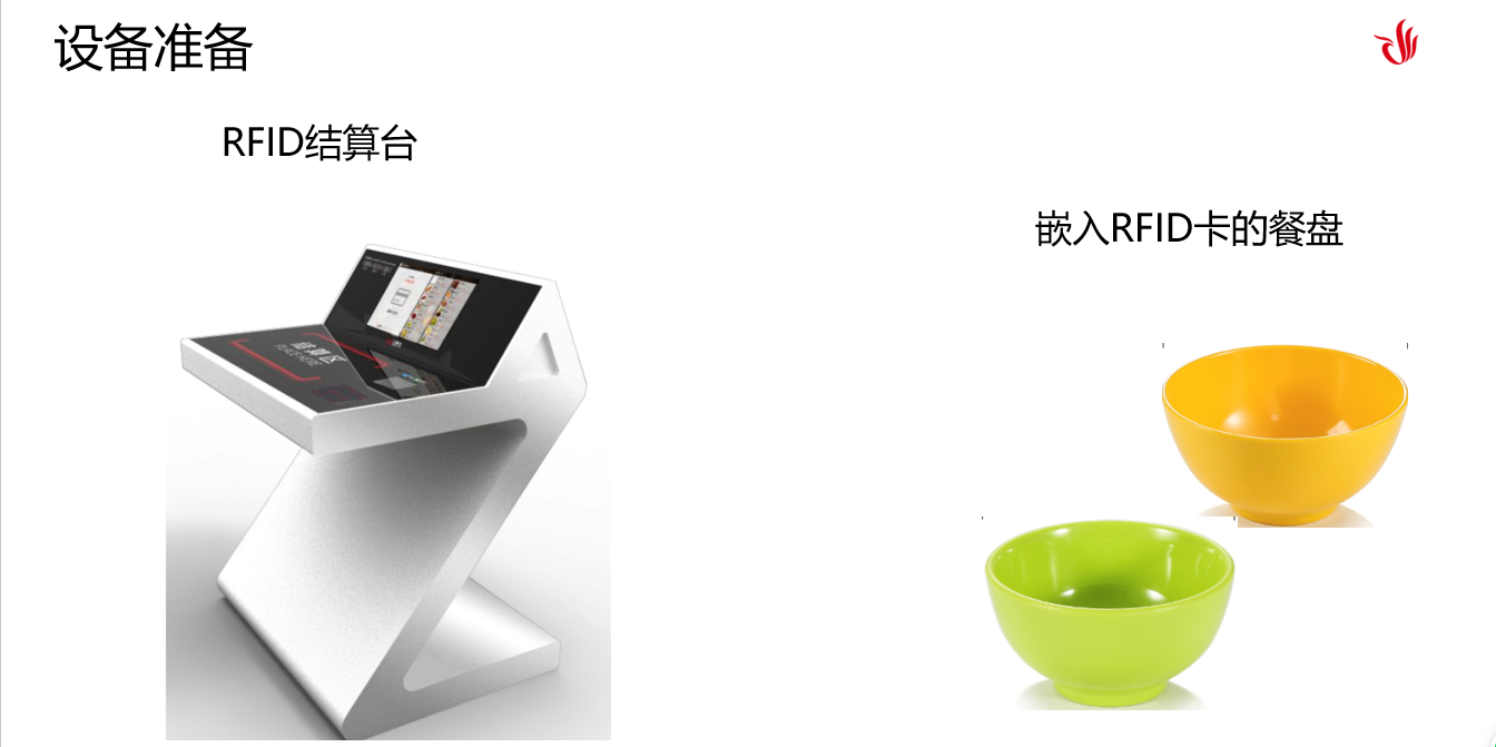 RFID火盘方式,采用定制的RFID芯片碗,不同芯片碗定义不同单价菜品,顾客流水线方式选择菜品,统一放到盘子里,然后到收银台结算处,火盘实时识别芯片碗快速统一结算,结算方式支持多种方式。