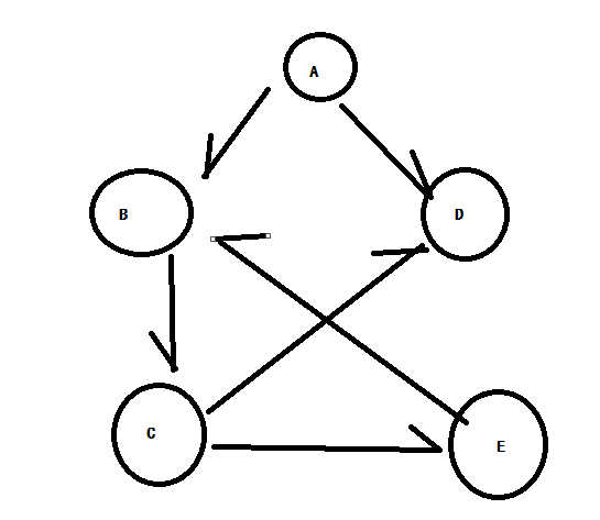 json = {"A":["B","D"],"B":["C"],"C":["E","D"],"D":["E"],"E":["B"]}<br>#从A出发找B