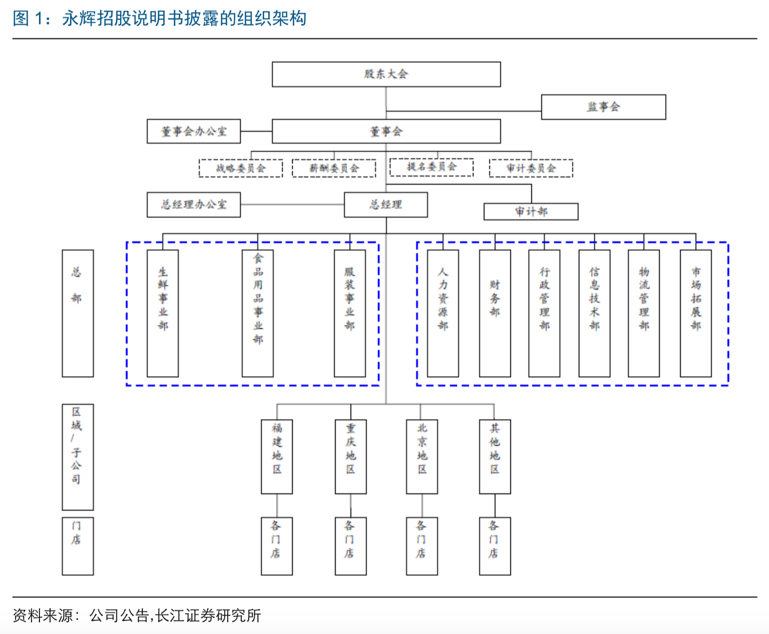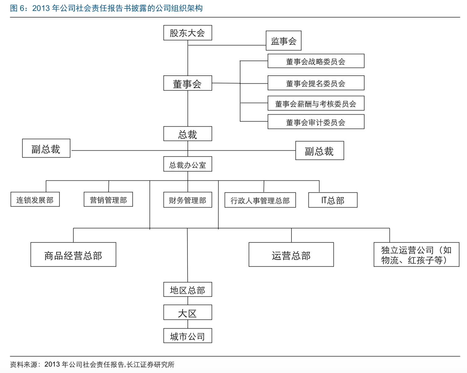下面列举了永辉2010招股书、苏宁易购2013披露的组织架构。
