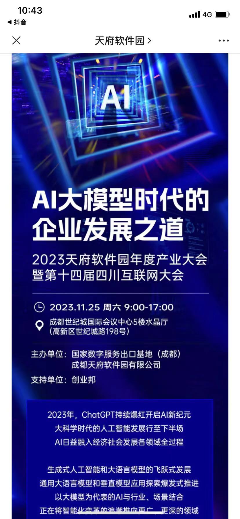 AI大模型时代的企业发展之道 - 2023天府软件园年度产业大会暨第十四届四川互联网大会报名啦!