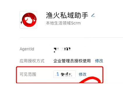 5)查看企业微信后台【应用管理】-【应用】中的第三方应用【渔火私域助手】以及自建应用【一店一购】小程序可见范围中的人员设定,是否包含点餐吸粉所用的企微店铺员工。