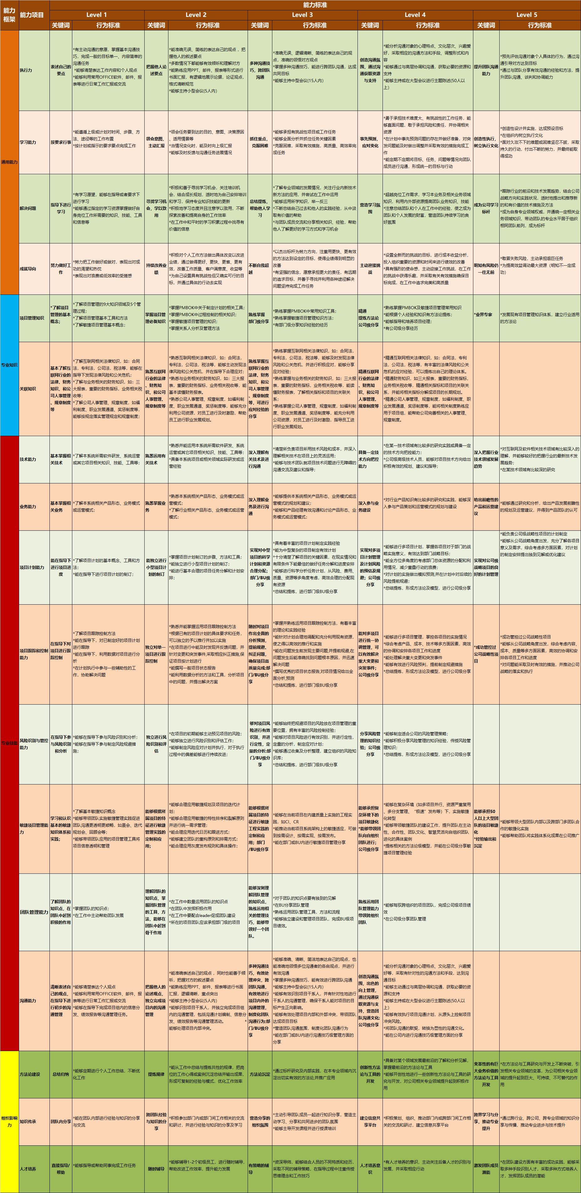 项目管理职位能力标准