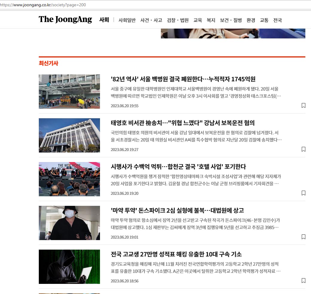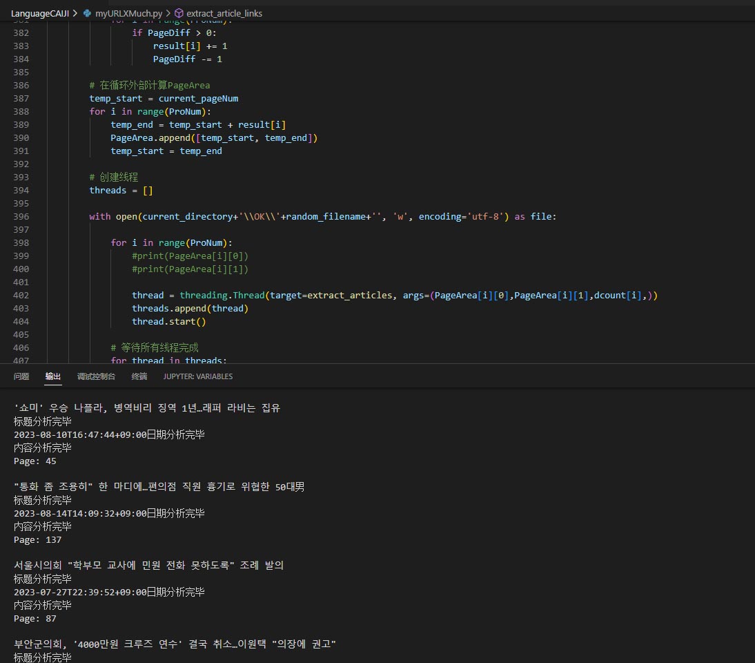抓KR新闻网站,多线程爬虫效果,设置了100线程