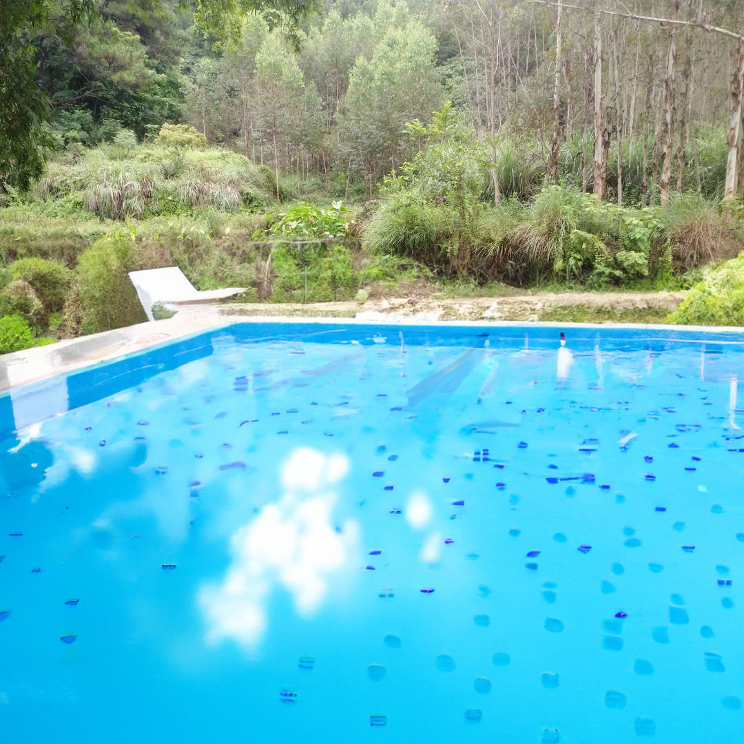 一副杂草丛生的水塘,变成游泳池的效果