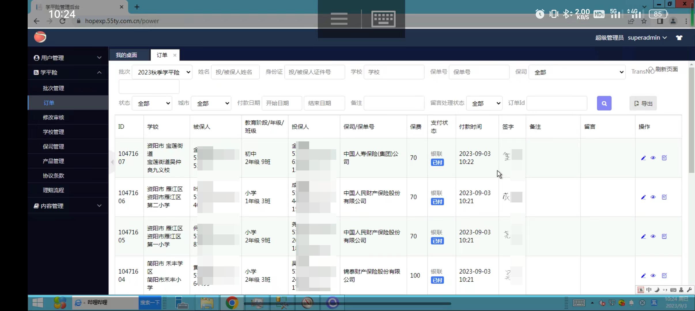 简阳资阳学平险系统运行中,为教育日常工作带来提效和便利